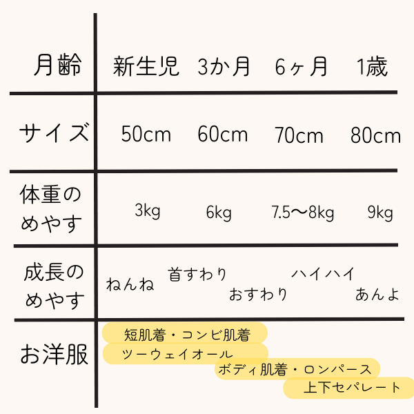 ②月齢別のサイズ目安は?